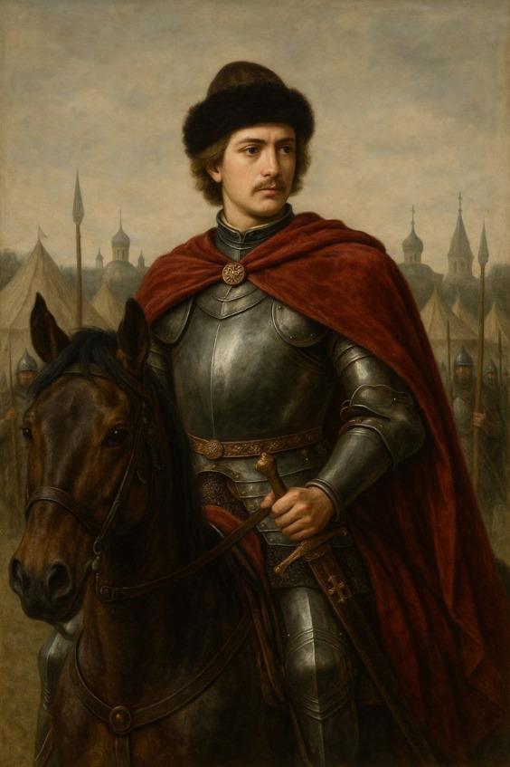 Наш герой рано потерял отца,Мать верность до конца мужу хранила.Пригож мальчишка красотой лицаИ статью, всем природа одарила.Он роду древнекняжеского был,Мальчишка князь Михаил Скопин-Шуйский.В детских забавах лидером прослыл,А в будущем он – полководец русский.Ему готов поддержку оказатьВасилий Шуйский, дядя был у Миши.Ни в чем не мог мальцу он отказать.Ворчал на слуг, чтоб двигались потише,Когда племяш в покоях засыпал,Читал или усердно он учился.И вскоре при дворе служить он сталХороший паж из Миши получился.Служить стал рындой* при царском дворе.В семнадцать лет он – стольник Годунова.Палата Грановита*, в той поры,Послов персидских принимать готова.Тут умер Годунов и новый царь,Лжедмитрий, восседает на престоле.И Михаил, как было это встарь,Служить продолжил по собственной воле.