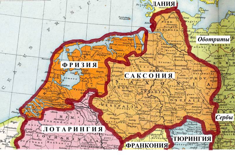 Саксония была разделена на восемь епископств. Тогда же и фризы приняли христианство по латинскому обряду. Об этом событии монах Гельмольд записал: «С этого времени был для проповедников слова Божьего подготовлен путь за Эльбу и апостолы поспешно разошлись по всему пространству севера» [9, кн.1, с.157].