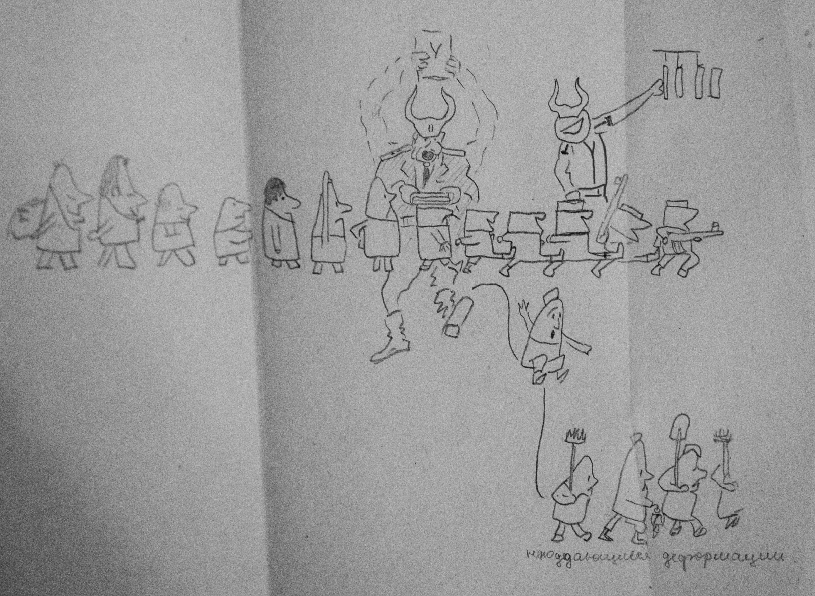 В графическом исполнении две картинки: «Автоматизация человека» и «Неподдающиеся деформации» – карикатуры на армейскую жизнь.