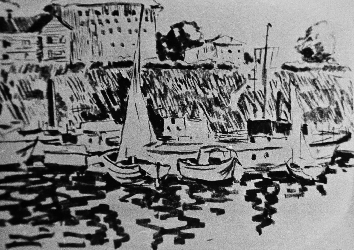 Тушью сделал уличные зарисовки, карандашом – портретные наброски отчима.