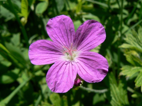 Огромные лиловые с красноватыми живыми прожилками на бархате волшебные репродукторы – цветы луговой герани. Может быть, мы просто не слышим звуков, которые они издают? Может быть, если получше прислушаться, можно что-то таинственное услышать? Наверняка! И до чего же красив этот ярко-фиолетовый цвет!