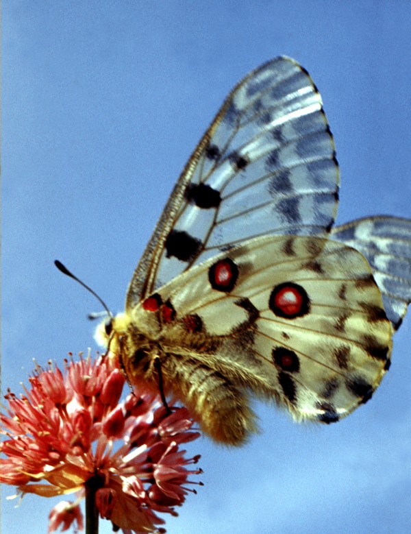 Однажды обратил особенное внимание на изображение бабочки Аполлона в книге-определителе «Насекомые СССР». Задумался над ее названием. Прочитал, что она «встречается локально и в небольших количествах» и «летает только в солнечную погоду». И хотя почти все бабочки – я имею в виду дневных – летают именно в солнечную погоду, но написанное здесь привлекло мое особенное внимание. Многие бабочки уже были сняты на слайды, а этой не было. Да ведь и название какое – Аполлон! Бог искусства и света у одного из просвещеннейших народов древности. Бабочка, бесспорно, красива: полупрозрачная, почти белая, с яркими черными и красными пятнами. Но дело не только в красоте. Ведь за ней нужно ехать, искать… Поиск! Пылкий, отважный и, наверное, трудный поиск – вот что привлекало больше всего.