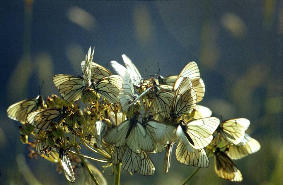 «…движется по синеве длинное облако, состоящее из миллионов белянок, равнодушное к направлению ветра, всегда на одном и том же уровне над землей, мягко и плавно поднимаясь через холмы и опять погружаясь в долины, случайно встречаясь, быть может, с облаком других бабочек, желтых, просачиваясь через него без задержки, не замарав белизны, – и дальше плывя, а к ночи садясь на деревья, которые до утра стоят как осыпанные снегом, – и снова снимаясь, чтобы продолжить путь, – куда? зачем? природой еще не доказано – или уже забыто…