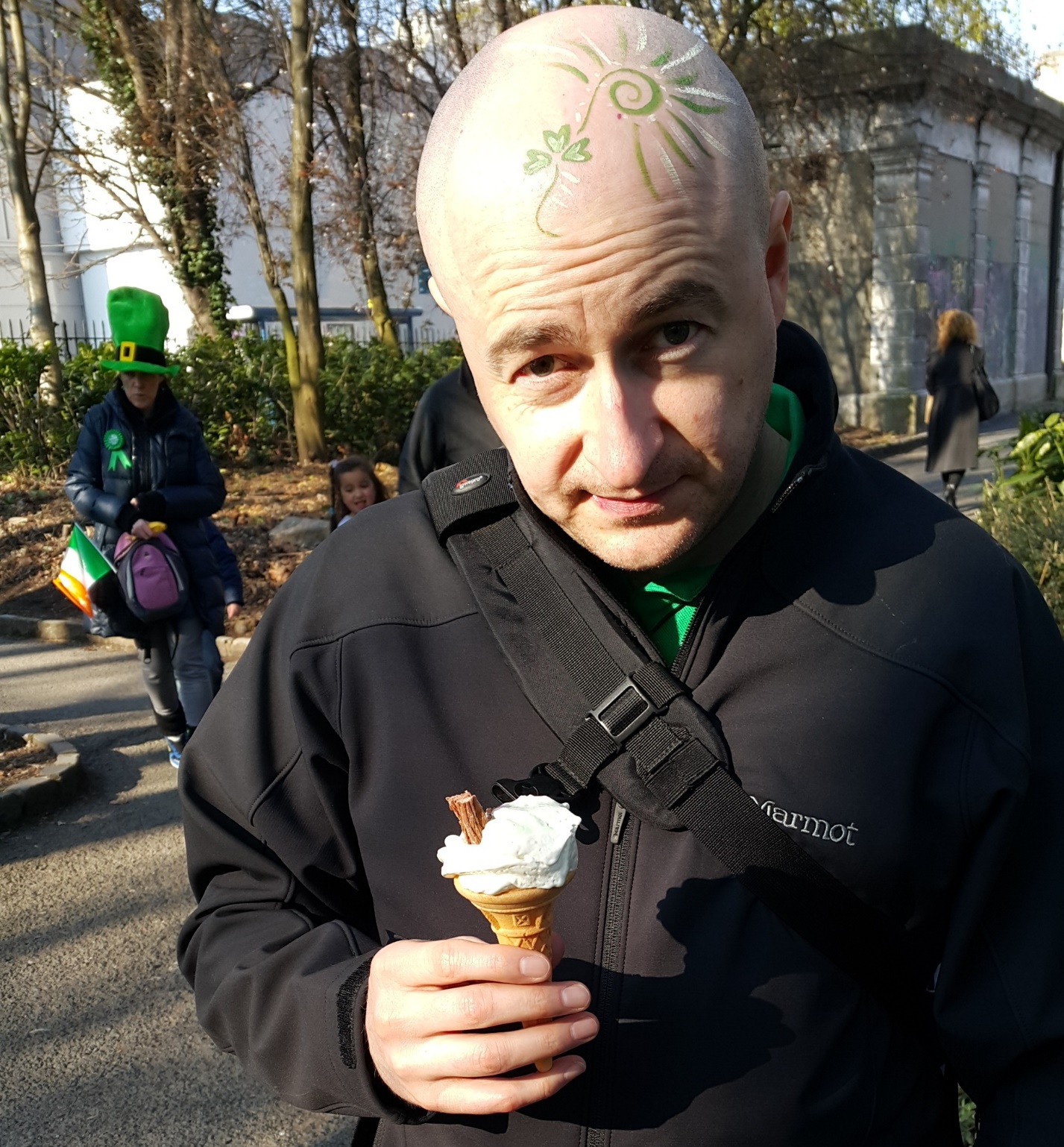 Сделав вид, что он теперь просто прохожий.