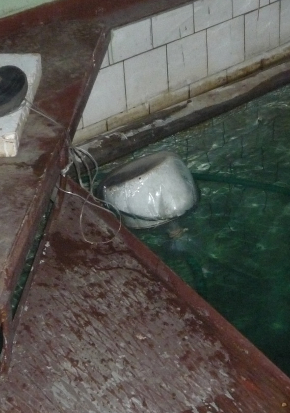 Примерно в полуметре от поверхности воды из места склейки полиэтиленового пакета (верхняя часть) пошли пузыри. Ёмкость из-за избыточного давления потеряла герметичность.