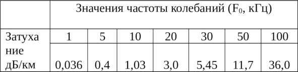От частоты звуковых колебаний зависит и поглощение звука в воде. Чем выше частота, тем сильнее поглощение. Вот почему высокочастотные приборы имеют малые дальности действия. В таблице 1 приведены уровни затухания звуковых волн в зависимости от частоты излучения.