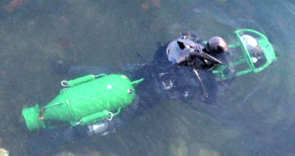 Рис. 4. Буксировщик водолаза «Протон» с навигационным прибором водолаза НПВ-2.