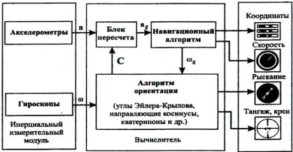 Рис. 12. Блок-схема бесплатформенной инерциальной системы.