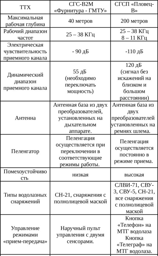 Из таблицы видно, что станция СГСП «Пловец-В» обладает рядом преимуществ перед станцией СГС-В2М (дважды модернизированной), а именно: