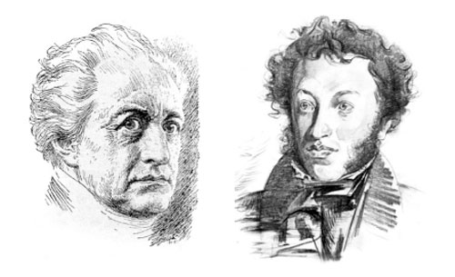 Арийский Гёте и наш ПушкинЗнакомы не были совсем,Но провидение в капустеНашло тех гениев меж тем.Дабы спасти людские душиОт ненавистников любви,Прикрыть на время наши ушиОт какофоний на крови…Творцы не будут раздражатьсяО воскресении Руси,В нетленном мире ухмыляться —Ведь им с Россией по пути!2007