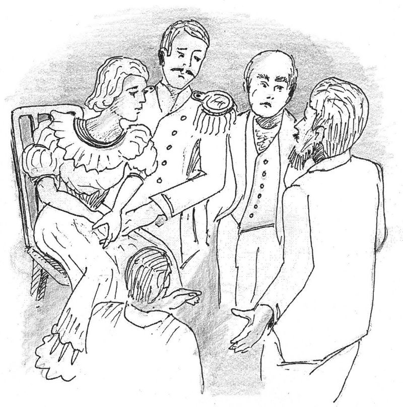 «Артисты» смотрели во все глаза. Затем улыбнулась дама – молодая, премилая, с гордой головкой, с обольщающим своенравием локонов, не усмирённым и неволей причёски. Эта улыбка словно бы всех примирила.