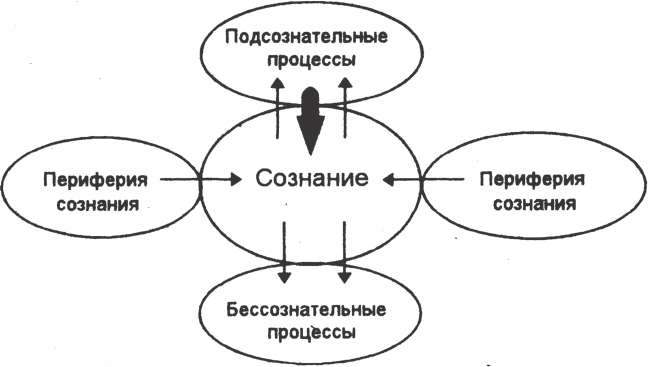 Соотношение сознательных и бессознательных процессов выражается следующей схемой.