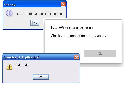 Ну, например, нужно сделать диалоговое окно с текстовым сообщением и кнопкой «ОК».