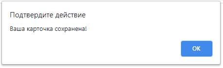 – В окне должен быть текст «Ваша карточка сохранена!»