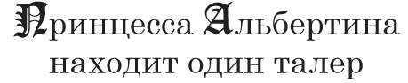 Как-то гуляя по вольному городу Килю, принцесса Альбертина нашла один талер, лежавший в сторонке на мостовой. Поскольку монетку кто-то потерял, принцесса решила вернуть её законному хозяину. По приказу Альбертины королевский министр Олдрик весь день развешивал по вольному городу Килю объявления: и на Корабельной улице, и на Старом рынке, и у ратуши, и у кирхи Святого Николаса. В объявлении говорилось, что в полдень следующего дня тот, кто обронил талер, может прийти в замок принцессы Альбертины и забрать монетку.