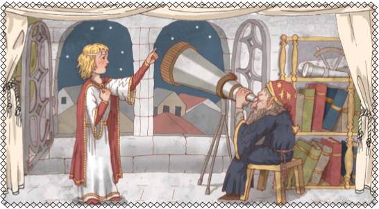 Во флигеле королевского замка жил старый звездочёт Бернард. Странный он человек. В вольном городе Киле его мало кто знал. Обычным жителям увидеть его было трудно. А всё потому, что старый Бернард не умел ни ткать полотно, ни продавать рыбу, ни лить стекло, ни заниматься каким-нибудь другим ремеслом. А умел только думать и смотреть на звёзды. И никто не знал, о чём он размышляет в своём пристанище. Звездочёт жил незаметно, никогда не покидал своего флигеля, и к нему мало кто ходил в гости. Лишь изредка заглядывала фрау Матильда посмотреть за порядком и справиться о том, не нужно ли уважаемому звездочёту Бернарду чего-нибудь. На эти визиты фрау Матильды звездочёт Бернард бурчал, что занят делом и его не следует отвлекать по пустякам.