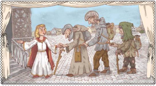 Монах Родерик хорошо знал вольный город Киль и всех его жителей, так что принцесса Альбертина часто пользовалась его подсказками и старалась хоть немножко помочь нуждающимся людям. Путешественников приглашали в гости, и принцессе было интересно посмотреть, как живут простые люди.