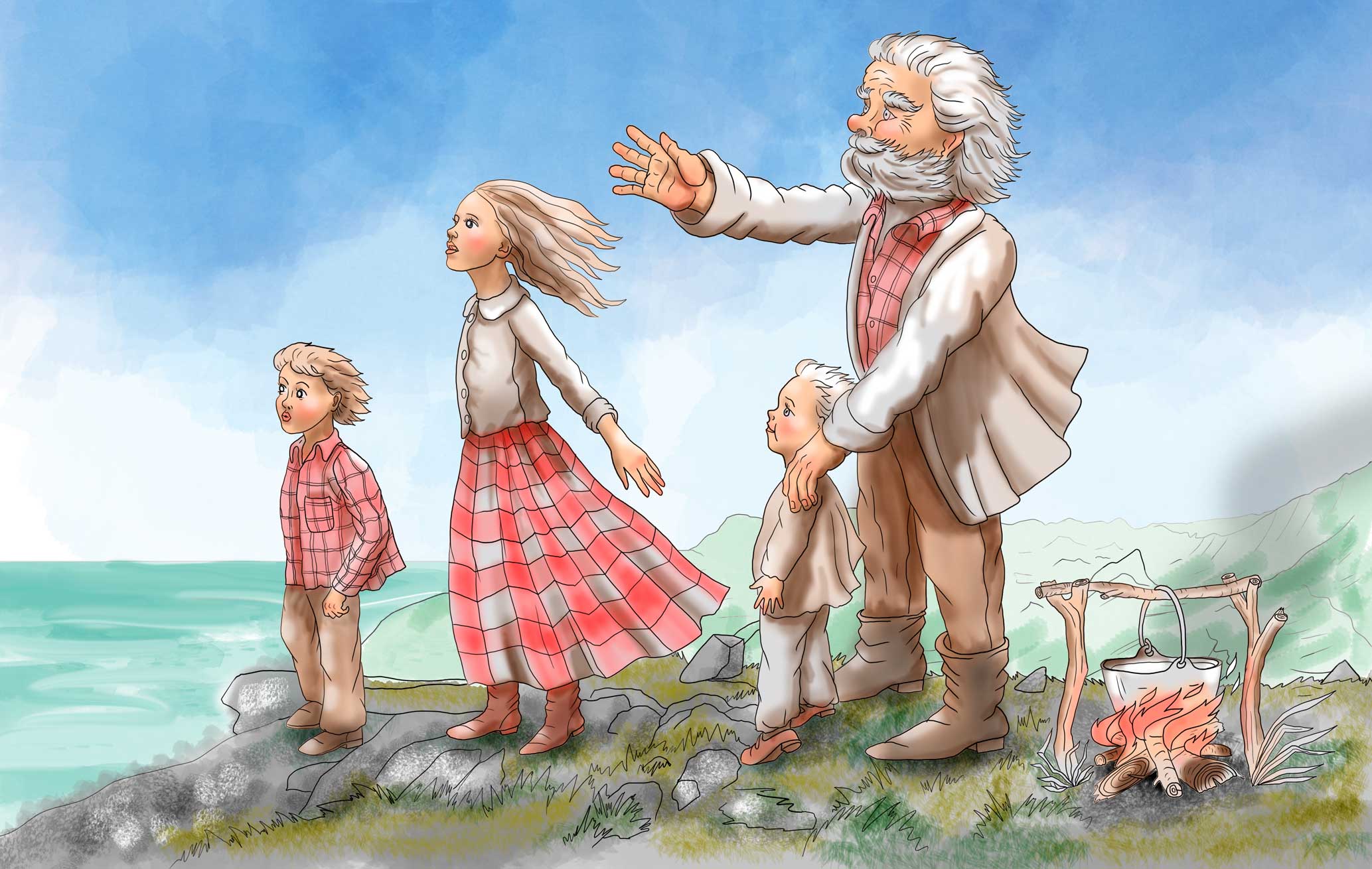 – Ничего, ничего, это нас не испугает! – прилаживая котелок, успокоил детей старый моряк. – Сейчас я вас накормлю вкусным матросским обедом.