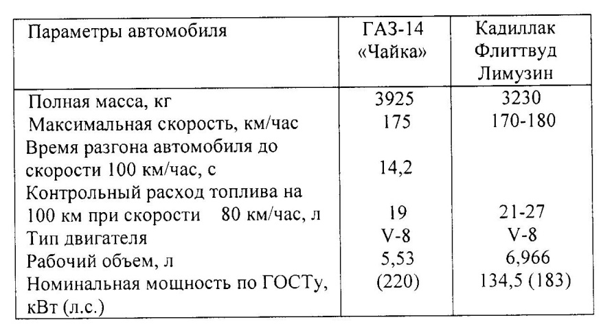 Чтобы оценить, насколько удачно были решены задачи, стоявшие перед разработчиками автомобиля, я приведу сравнительные технические характеристики автомобилей ГАЗ-14 «Чайка» и «Кадилак Флиттвуд» в таблице.