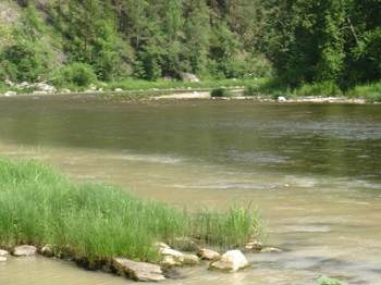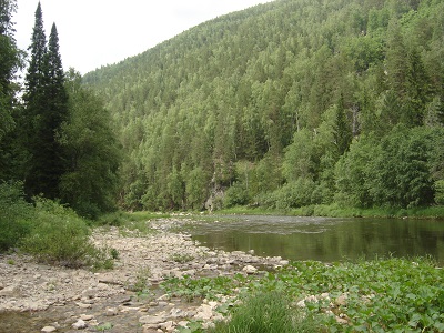 Большой Инзер речкой оказался быстрой, шириной метров в тридцать, но глубиной не более полуметра и то, из-за прошедших недавно дождей, вода считалась очень большой.