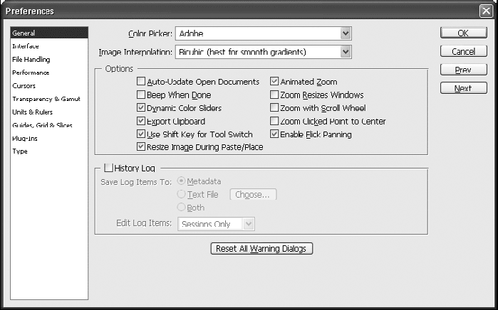 • Color Picker (Цветовая палитра). В этом раскрывающемся списке вы можете выбрать, какой набор цветов применять программе Photoshop для работы. Предлагаются два варианта: Windows (Системная) и Adobe (Собственная палитра Adobe Photoshop). Лучше использовать «родную» для программы палитру Adobe (то есть выбрать в списке вариант Adobe).