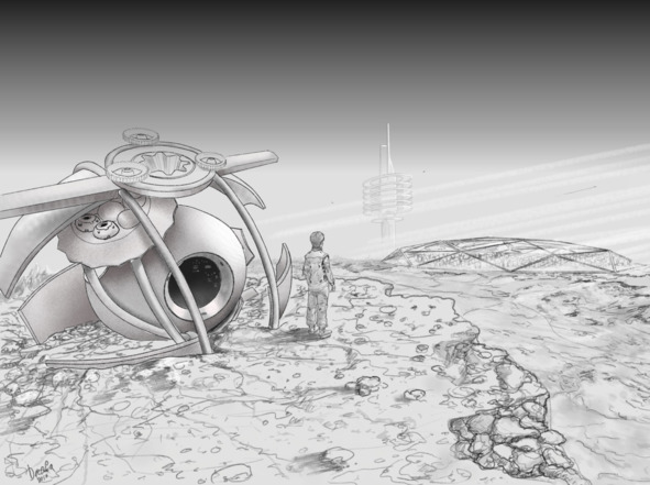 Люлька сорвалась с места и взмыла в небо по рельсам. Но произошло то, чего Алексей не мог ожидать. В какие-то доли секунды рельсы перестали соприкасаться с люлькой и некоторое время она находилась в свободном полёте. Дыхание пассажира перехватило. Вылетев в гигантскую трубу люлька покинула стену города и плюхнулась с высоты нескольких сотен метров на землю. На удивление удар в салоне не чувствовался. Даже чай, который Алексей держал в руках не шелохнулся. Пассажир в изумлении не отвлекался от происходящего осторожно поставил чашку с чаем на стол. Антигравитационное поле люльки и современный гироскоп способны были исключить любые повреждения внутренней капсулы с пассажиром. Единственная проблема заключалась в том, что дальше люлька ехать не смогла, так как рельс здесь уже не было. Алексей подошёл к двери и дёрнул ручку. Дверь с лёгкостью плавно открылась и он вышел. Он первый раз в жизни оказался за пределами города. В школе, конечно же, проходят историю мира, но только сейчас он увидел всё своими глазами.