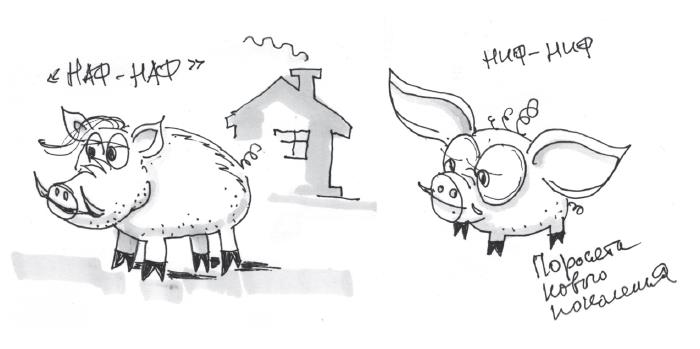 Основу средневекового сказочного королевства составляли НАФ-НАФЫ – крепкие работящие поросята с залихватскими чубчиками, со временем переродившиеся из-за волшебных коробочек в НИФ-НИФОВ, которых из-за больших глаз и ушей можно было перепутать с современными барашками.