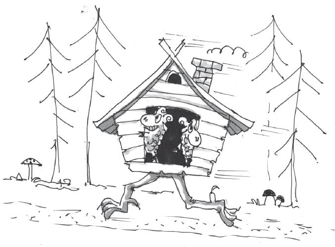 Когда барашек Петя был маленьким и жил с родителями, его водили в этот музей. Больше всего Пете нравились волшебные домики. Один из них был ужасно смешной. Из него торчали две птичьи ножки, которыми он бегал по кругу. В этом домике катали маленьких посетителей. А ещё он смешно выполнял волшебную команду: «Встань к лесу задом, а ко мне передом».