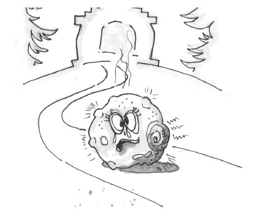 Запах был таким, что встречные звери, зажимая носы, сворачивали с тропинки, а зайца даже стошнило. Но на одном из пригорков колобок, в очередной раз оглянувшись на дедушку, слетел с тропинки в сторону и провалился в какую-то ямку под вывернутым корнем дерева.