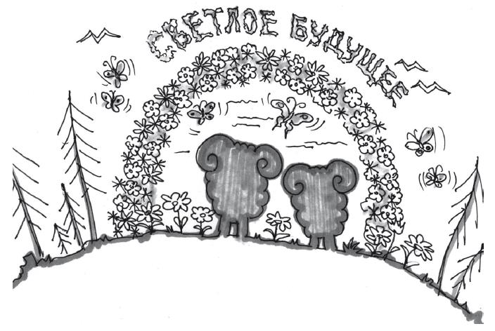 Посреди поляны была арка, сплетённая из цветущих растений, а в воздухе над аркой светилась надпись: «Светлое будущее».