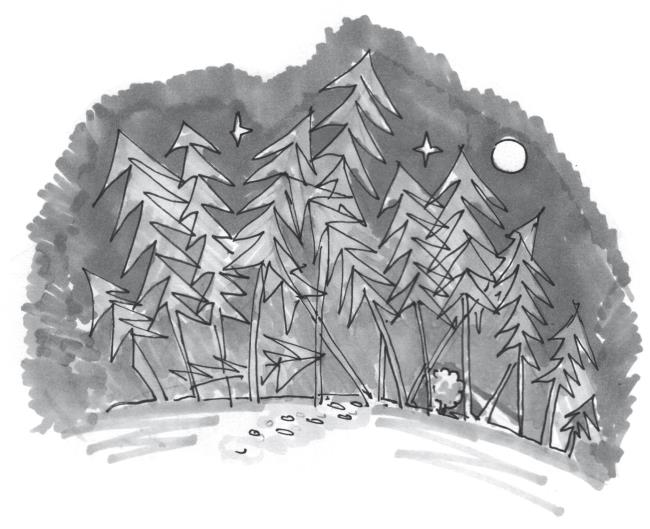 Петя уходил всё дальше и дальше от поляны, а свет от фонарика иногда мелькал между деревьями, пока совсем не исчез.