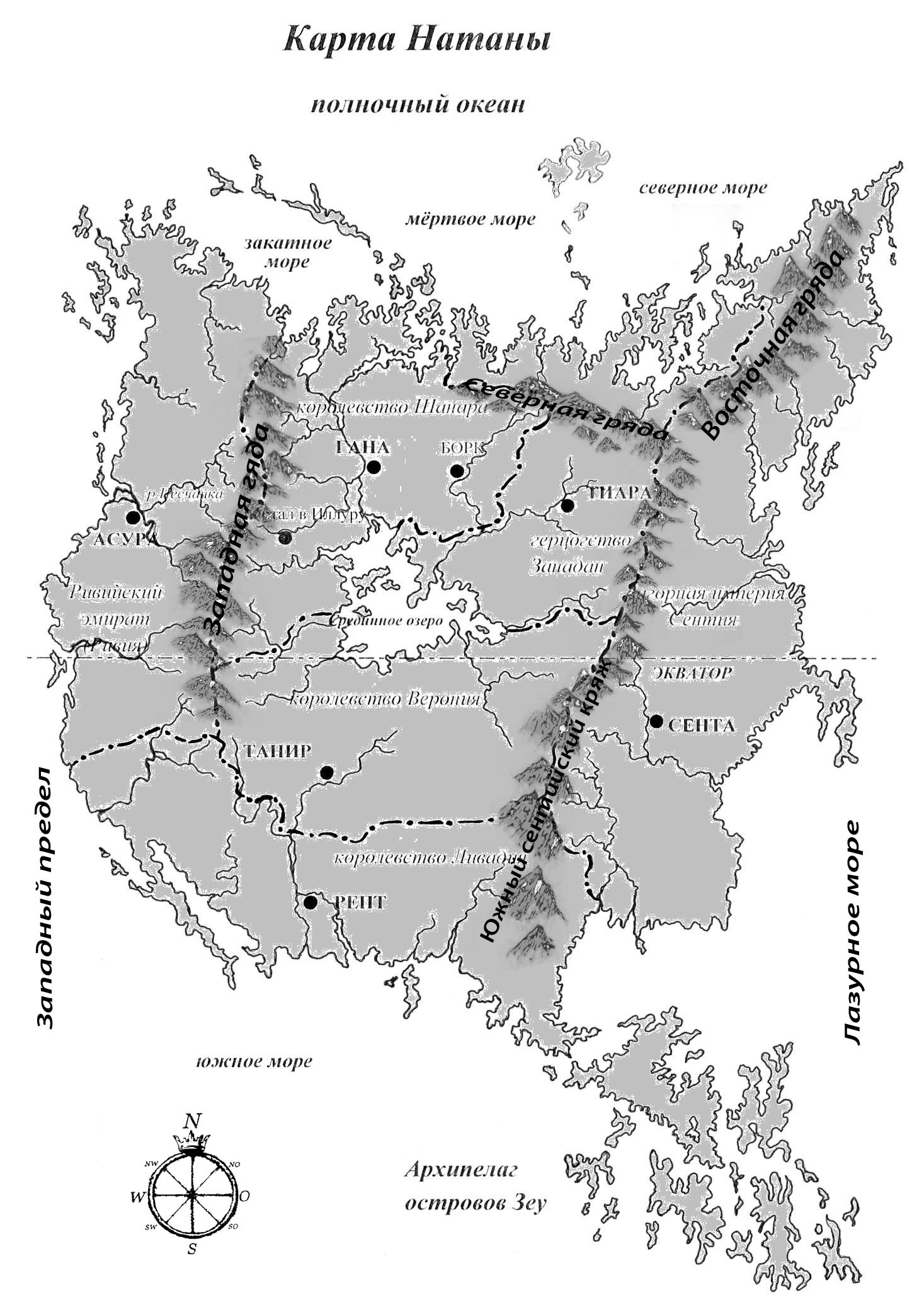 Пока вымотанные последней схваткой и последующим изнурительным переходом егеря располагались на отдых, Азир вспоминал последние эпизоды этой злосчастной войны, в которой его отряд принял самое непосредственное участие. Все войны во все времена возникают по одной простой, но от того не менее действенной причине – когда сталкиваются противоборствующие интересы сильных мира сего, и в мирном нахождении компромисса как минимум одна из сторон не заинтересована. Занадан, крупное герцогство на севере Натаны, по площади совсем чуть–чуть уступающее своему западному соседу, королевству Шанара, всегда отличался воинственностью своих жителей, испокон веков сражающихся и друг с другом, и с суровой северной природой за свое место под солнцем. Любой занаданский мальчик начинал постигать воинское искусство с детства, а деревянные мечи и копья были любимыми игрушками детворы, не говоря уже о луках, с которыми в совершенстве умели обращаться даже занаданские женщины. Впрочем, не меньшим почтением у северных воинов пользовались боевые топоры, секиры, копья, глефы и множество другого колюще–режущего оружия, какое только могло придумать человечество за всю многовековую историю войн. Войны Занадан вел постоянно, и если бы не бедность и малочисленность коренного населения, с трудом выживающего в неуютных заснеженных горах, покрывших почти весь север герцогства, оно вполне могло бы уже разрастись до размеров империи. И это не пустые слова – за последние века в результате ряда войн герцогство только за счет западного соседа приросло несколькими уютными плодородными долинами на побережье Срединного озера, которые Шанара вот уже более века безуспешно пыталась вернуть обратно. С лежащей на востоке Загорной империей Сентия у Занадана также сложились крайне натянутые отношения, однако полноценной войне на восточной границе препятствовала протяженная и труднопроходимая горная гряда, в простонародье именуемая Восточной. Этот горный массив почти сплошь состоял из высоких, крутых заснеженных пиков, начисто лишенных растительности, и в районе Срединного озера плавно переходил в более низкий и значительно более пологий, заросший густым смешанным лесом южный кряж, сходящий на нет у самых границ Ливадии и у южных народов получивший другое название – Сентийский.