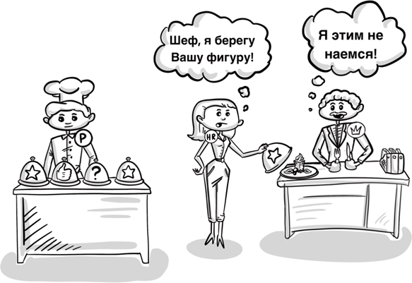Давайте пройдемся и по внешним рекрутерам. Поверьте, в них человеческого не меньше. Считается, что внешний рекрутер хорош тогда, когда голоден до результата. Ну как ему иначе работать в высококонкурентной среде, где нужно быть зачастую 24/7 (большинство внешних рекрутеров, когда готовятся к своему 2-недельному отпуску, осознают, что это будут просто короткие рабочие дни), работать с отказами с двух сторон, при этом имея реальную финансовую мотивацию от закрытия вакансии; плюс ко всему, их даже самые значительные усилия не являются достаточным гарантом успеха. Для меня откровением за годы работы было осознать, что 80 % всех руководителей возлагает полную ответственность за подбор сотрудника на рекрутера – или внешнего или внутреннего, равно как и за результаты работы подобранного сотрудника. Это как если вы в кондитерской заказали торт с безе и мясом, а потом обвиняете кондитера, что он получился не вкусным. Или ещё лучше – просто попросили кондитера «приготовить что-нибудь вкусное», а потом разочарованы, что ваши вкусовые предпочтения не сошлись. Да, кстати: руководители любят заказывать «просто хорошего экономиста», «просто хорошего менеджера», «руководителя – настоящего мужика» и тому подобное. Это нормально. Но представление о хорошем и плохом у разных людей отличается.