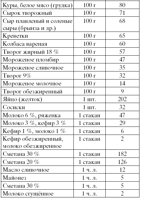При возможности не следует употреблять продукты из цельного и жирного молока (творог, кефир, простокваша, мороженое и т. д.), оказывая предпочтение нежирным и обезжиренным. Маложирное и снятое молоко и продукты, приготовленные из них (сыр, творог и др.), содержат столько же белка, кальция и фосфора, как и жирное.