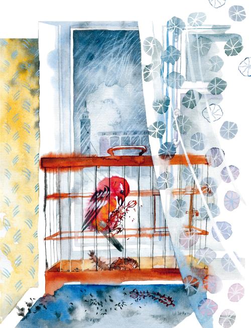 Дома я поставил клетку на окно, чтоб клёст мог поглядеть на улицу, на мокрые крыши сокольнических домов и серые стены мельничного комбината имени Цюрупы.