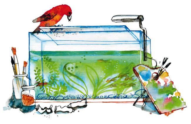 Там под светом рефлектора раскинулись тропические водоросли, а между ними плавали королевские тетры – тёмные рыбки, рассечённые золотой полосой.