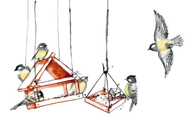 На звук его голоса залетали синицы-московки. Они клевали коноплю и сало в кормушках, пересвистываясь с Капитаном.