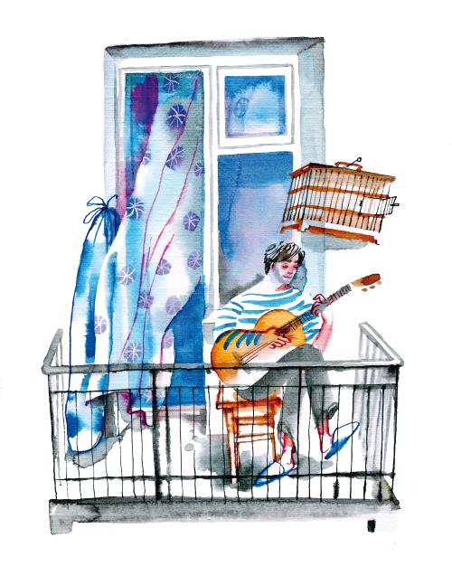 Каждый день перед заходом солнца Капитан вылетал из клетки, усаживался на аквариум и, пока я настраивал гитару, легонько цокал, прочищая горло.