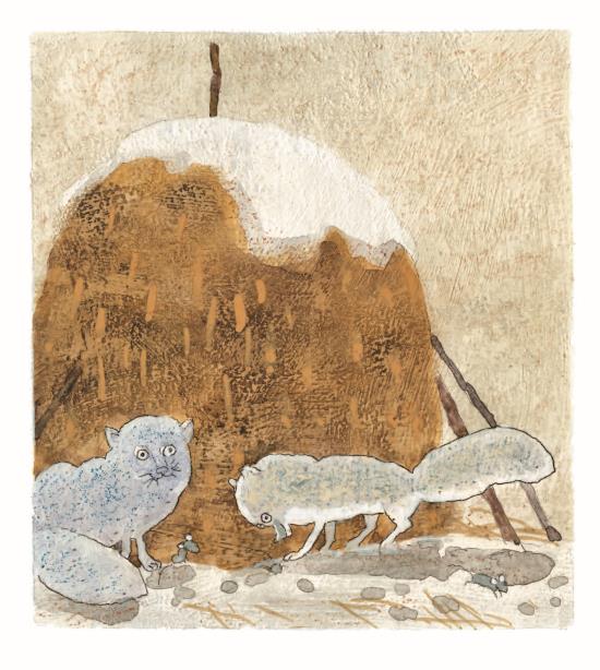 Мышей у стога оказалось полно. Попискивая, шныряли они в перепревшем сене, и Наполеон гонялся за ними, хлопал по снегу лапами и хвостом.
