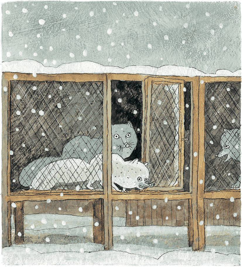 Вообще-то за песцами следили строго, и Прасковьюшка, которая их кормила, всякий раз нарочно проверяла, крепкие ли на клетках крючки. Но в то утро случилась неприятность: директор зверофермы Некрасов лишил Прасковьюшку премии, которая ожидалась к празднику.