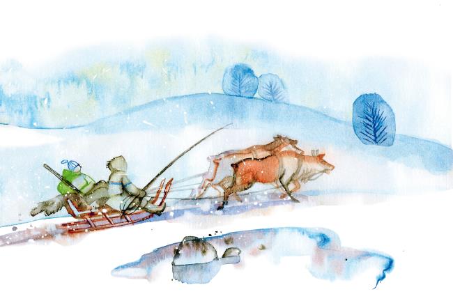 Коля сел в нарты, взмахнул шестом своим, хореем, – олени побежали по весенней тропе. Пронька помахал ему рукой и пошёл к лабазу.