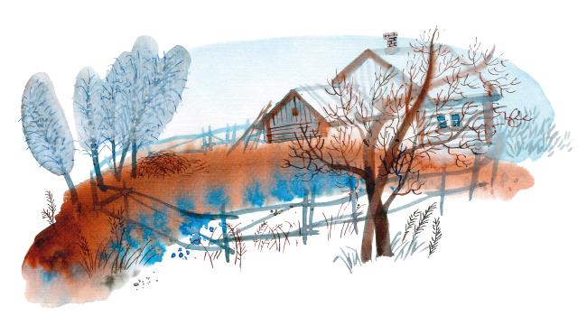 Стоял на краю леса домишко-то Булыгин. Старенький был, совсем понурый. Осиновая щепа на крыше покоробилась, а между брёвен изо всех щелей торчал наружу белёсый мох.