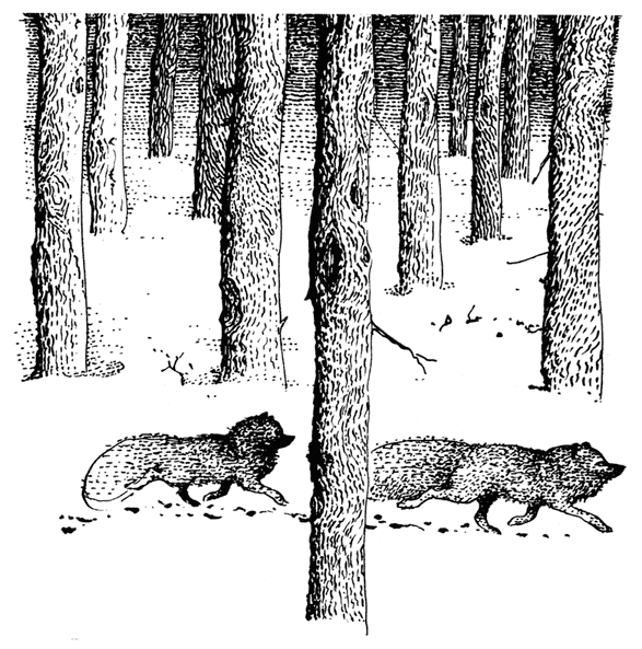 Мыши затаились, и песцы бросили охоту, побежали к опушке леса. Пересекли березняк, добрались до больших деревьев.