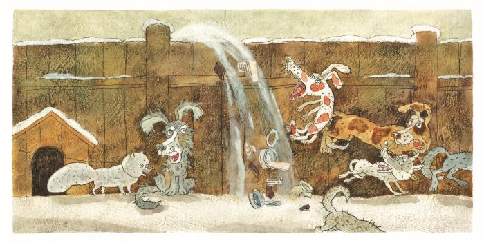 Но уговоры Пальмы не помогали. Свора вплотную приблизилась к конуре, а коварная Полтабуретка вскочила на крышу и стала скрести её когтями.