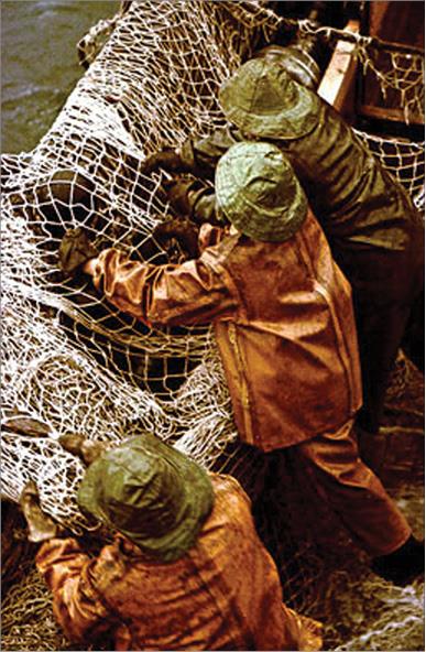 На палубе вахтенные готовили траловое хозяйство. Без спешки, но очень споро они распутывали многочисленные тросы, веревки, сети. Посредине всего этого нагромождения стоял человек в высоких резиновых сапогах – тралмейстер. По мановению его руки каждая деталь снасти ложилась точно на свое место вдоль борта.