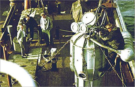 Мне повезло: начальником экспедиции на «Тунце» оказался Олег Николаевич Киселев, с которым мы были знакомы по Мурманску – встречались в ПИНРО, где он заведует лабораторией новых методов разведки рыбы. Горячий энтузиаст освоения Заполярья, зачинатель подводных исследований на севере, он уже четверть века шаг за шагом изучает природу этих суровых широт. Более семидесяти научных экспедиций, в которых он участвовал, помогли раскрыть многие тайны Арктики. С юношеских лет Киселев страстно увлекся идеей проникнуть в глубины моря, подарить их богатство людям. Сначала это было возможно лишь с помощью гидроакустических приборов, потом для разведки рыбы начали использовать гидросамолеты, а несколько лет назад он проник непосредственно в морское царство в первом гидростате, позволявшем опускаться на глубину до двухсот метров. Потом ходил на научной подводной лодке «Северянка», работал с гидростатом «Север-2», – аппаратом, способным достигать предельных глубин Баренцева моря.