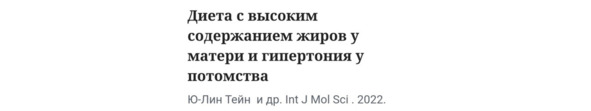 У потомства, подвергшегося воздействию диеты на животных жирах матери, проявляются различные компоненты метаболического синдрома, включая ожирение, резистентность к инсулину, стеатоз печени, дислипидемию и артериальная гипертензия. Кроме того, такой тип питания у матери может изменять развитие мозга, что приводит к снижению когнитивного развития, усилению депрессивного и агрессивного поведения и изменению пищевых привычек у потомства (5).
