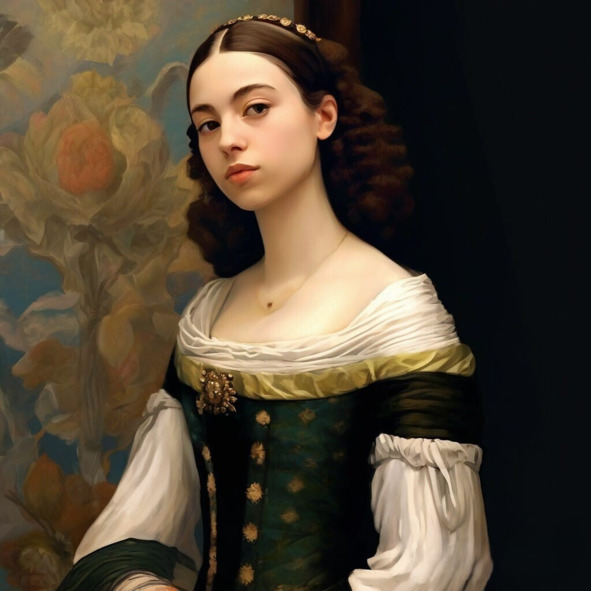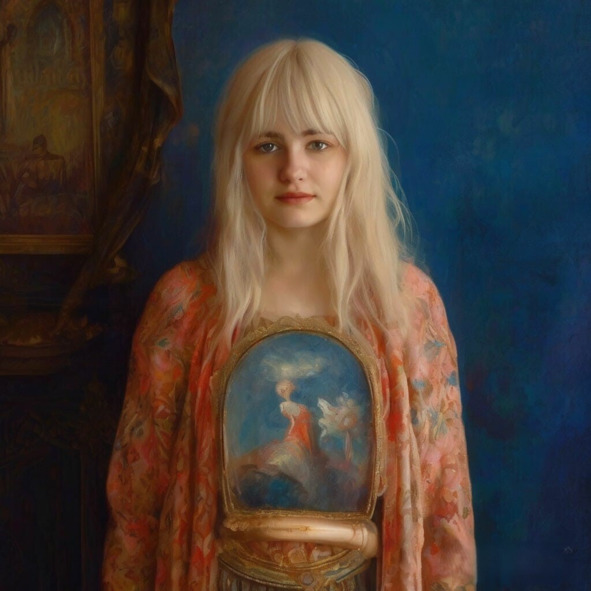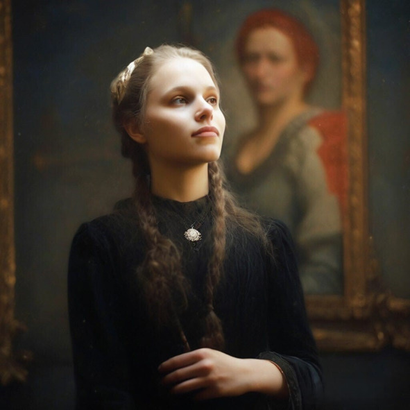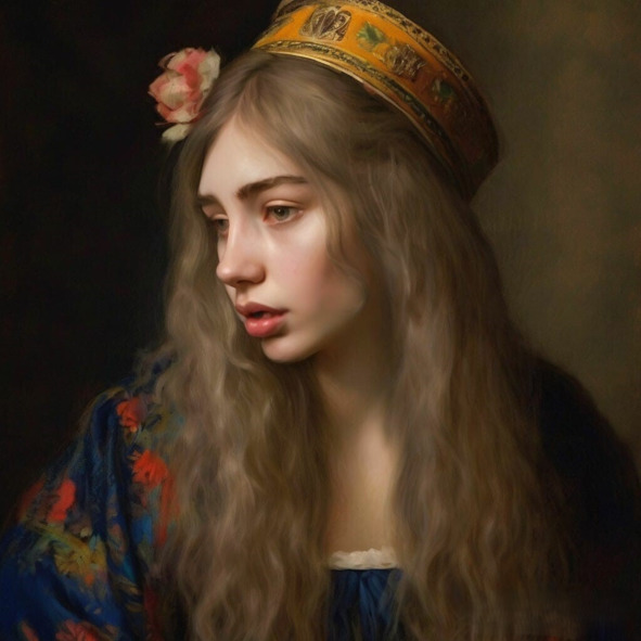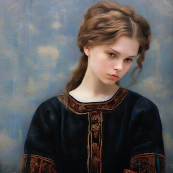 В третьем томе книги «Портреты девушек» вы увидите совсем иные картины – отличные от тех стилей, что вы видели в первых двух томах. Как и прежде, они сделаны в нейросети Шедеврум.