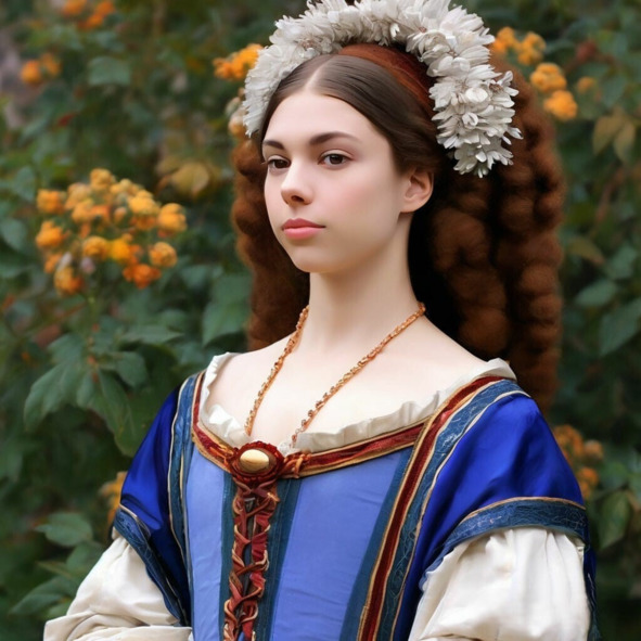 В главе 1 этого раздела представлены работы разных стилях, объединённых тем, что все они с историческими костюмами. Кроме того, женские портреты в исторических костюмах также есть и в нескольких других моих книгах.