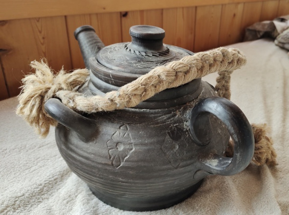 На столе стоял большой керамический чайник, с рунической надписью на нём.